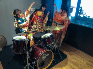 些か今日は文面が荒れている。仕方ない。とてつもないドラマー、翌日には、大人になった子供たち。その二つが私の太鼓の周りに集まったんだ。こんな幸せな週末はなかなか無い。その余韻で文章が揺れる。アイドルの握手会に参加したものはしばらく手を洗わないと聞く。海野さんを駅に送り、ガッチリ握手。帰宅後トイレに行って手を洗った。書斎に寄り銀色の油性ペンを手に取ると、再び防音室へ。海野さんがセッティングしてくれたドラムセットを片っ端からマーキングしていく。スタンドに直接ペンを入れる。太鼓の角度、高さ、全ての距離。セットをバラバラにしても、すぐこの状態にできるように。これが私の「手を洗わない」ということだ。そんなことはつゆ知らず、翌日陽気な晴れ着三人音楽娘が現れセットに座る。好きなように遊んでくれ。マーキングは済んでいる。三人の清々しい将来を保証する、空の青。晴れすぎていてあるわけないけど、俺にはかすかに虹が見えたぜ。